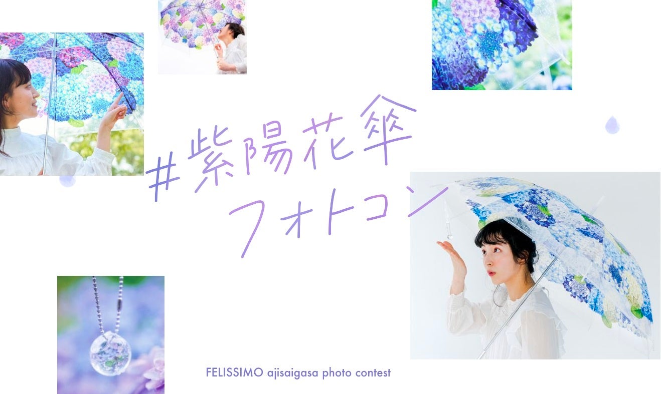 梅雨の季節に紫陽花を愛で、紫陽花が開き咲いていく全国をつなぐフォトコンテストです。全国24カ所に展開される紫陽花の名所ではもちろん、おうちの庭に咲く自慢の紫陽花や、公園で見かけた紫陽花などと一緒にでも◎。身近な風景の中に「雨空に咲きこぼれる 紫陽花の傘」を使って撮影した写真を応募して一緒に楽しむ写真を募集しています。応募作品の中から選考し賞を選び、フェリシモ「YOU+MORE! [ユーモア]」のアイテムなどが各賞へ贈られます。