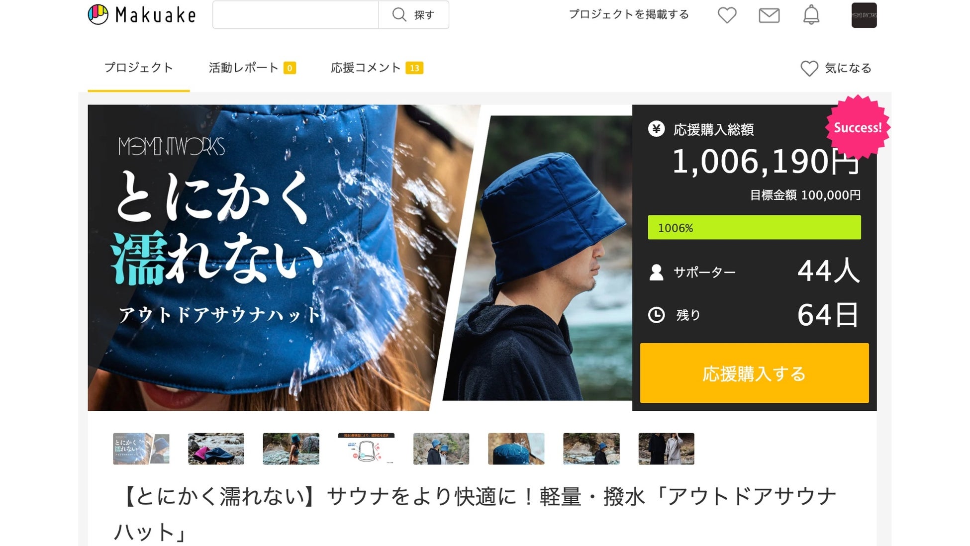 2023年6月29日0時にプロジェクトを開始し、15時間強後の15:11時点で応援購入総額は新興ブランドの第1弾製品であるにも関わらず、100万円を突破しました。