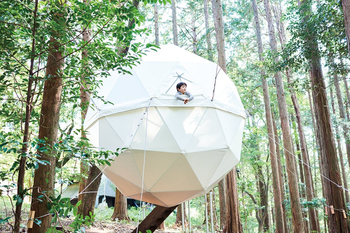 森にひっそり浮かぶ「球体テント」、雨天でも緑を眺めながらゆったりとした時間が過ごせる「サロンカフェ」など自然を身近に感じながらより豊かな時間を過ごしていただくための施設やサービスをご用意しています。