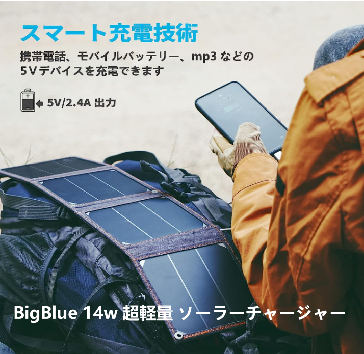BigBlue 14w ソーラーチャージャー 1USBポート ソーラーパネル |