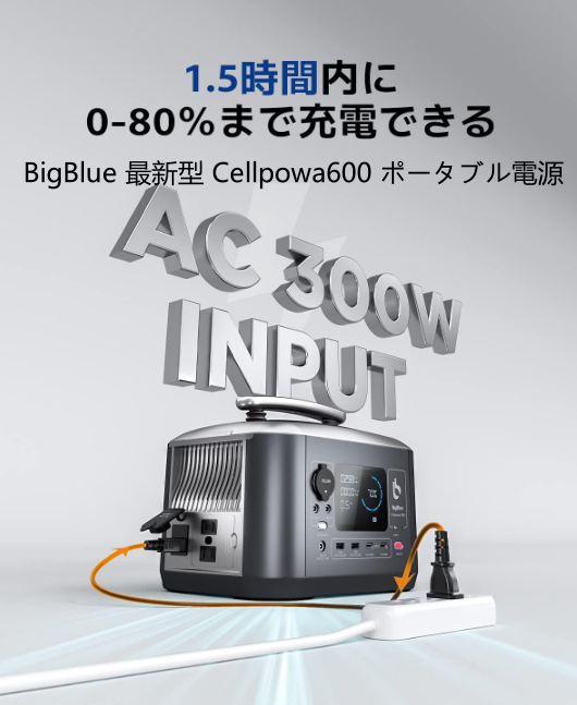 ◆BigBlue Cellpowa600 ポータブル電源リン酸鉄リチウムイオン電池 (LiFePO4) 537.6Wh/168,000mA 大 1.5時間80%充電