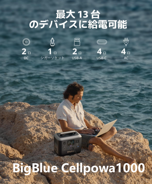 ◆BigBlue Cellpowa1000 ポータブル電源1062Wh/168,000mA 2口AC出力(1000W 瞬間最大2000W)