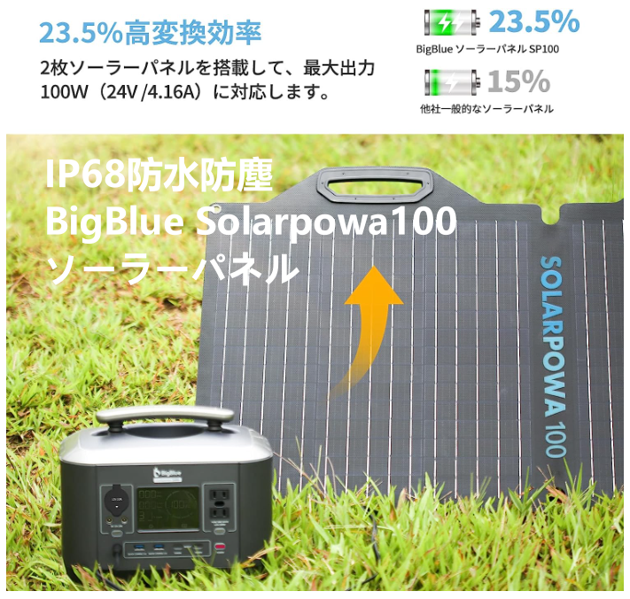 ◆BigBlue Solarpowa100(24V 4.16A )ソーラーチャージャー 折りたたみ式 Cellpowa500ポータブル電源専用