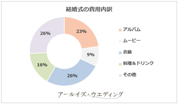 さらに、衣装(ウエディングドレス・タキシード・衣装小物)の平均費用は500,381円という結果でした。