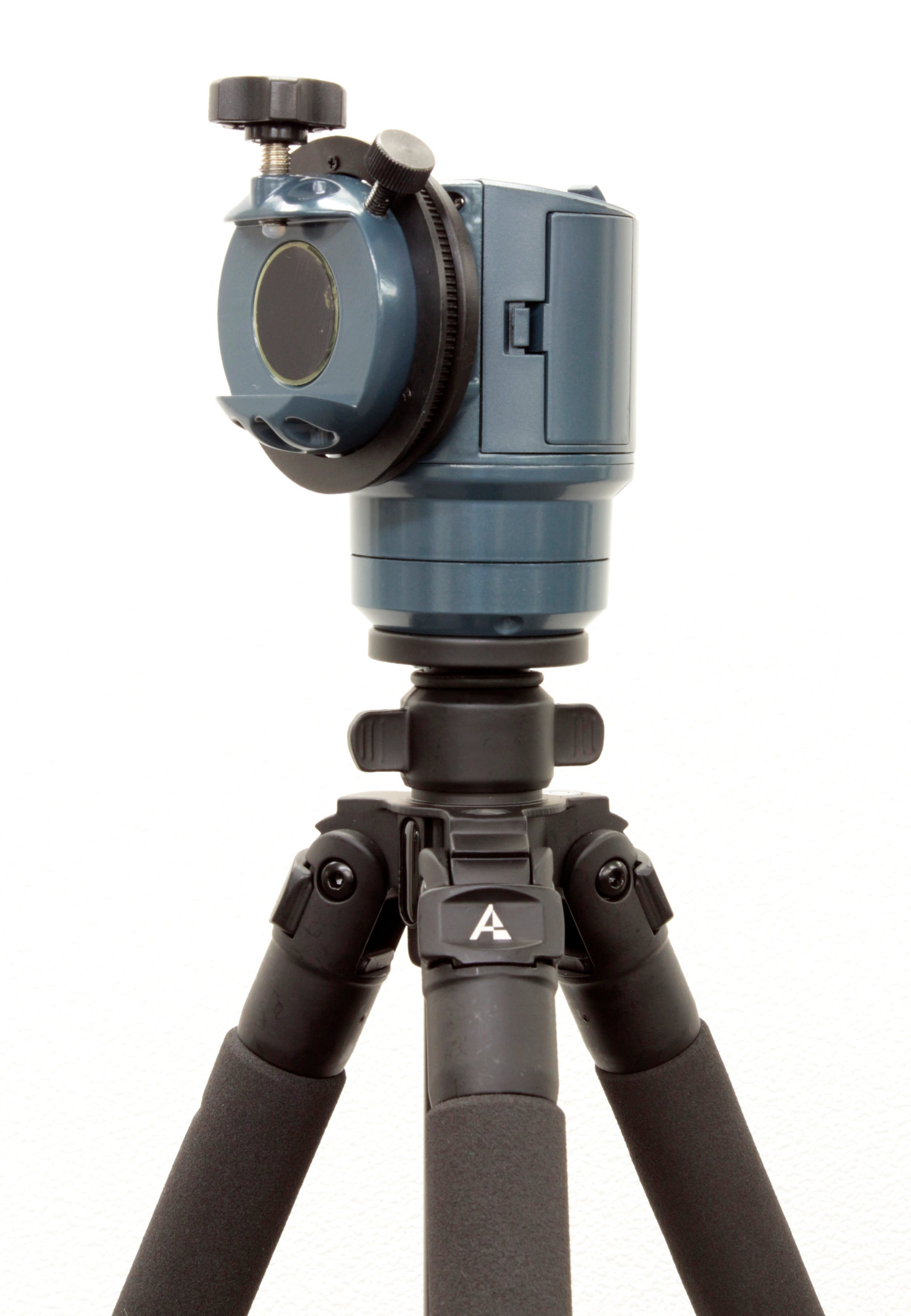 鏡筒取り付け部はアリミゾ式を採用していますので、市販の多くの幅狭アリガタレール(底幅約44mm)を装備した鏡筒を取り付けることも可能です。マウント底部には3/8カメラネジがあるのでカメラ三脚に取り付けることもできます。三脚は軽量なアルミ製3段タイプで、エレベーション機能も装備しています。