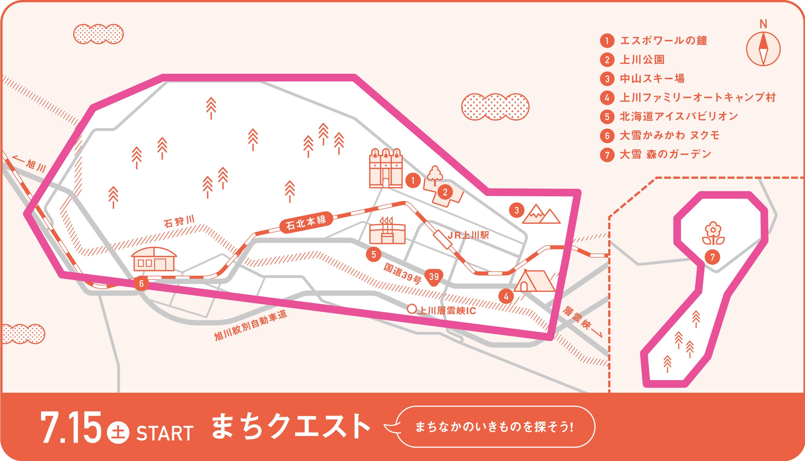 ②まちクエスト(上川町中心部及び、大雪 森のガーデンエリア)