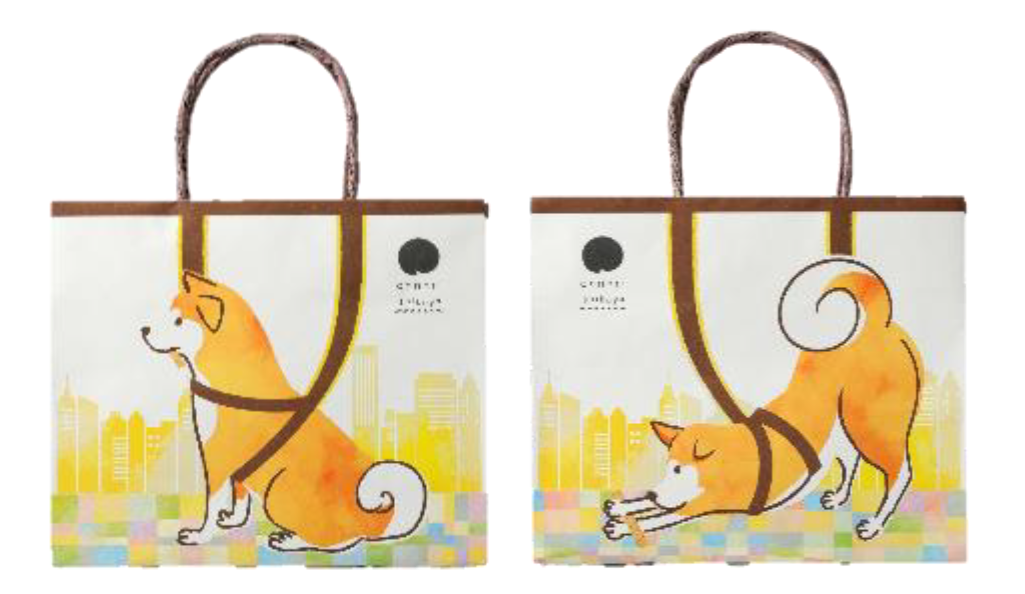 ハチ公のハーネスが紙袋の取っ手と繋がっているデザインは、まるで渋谷の街をハチ公と散歩しているよう。