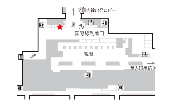 国際線到着口を背に、エスカレーター左手の「モバイルセンター」カウンター店舗敷地内への設置となります。