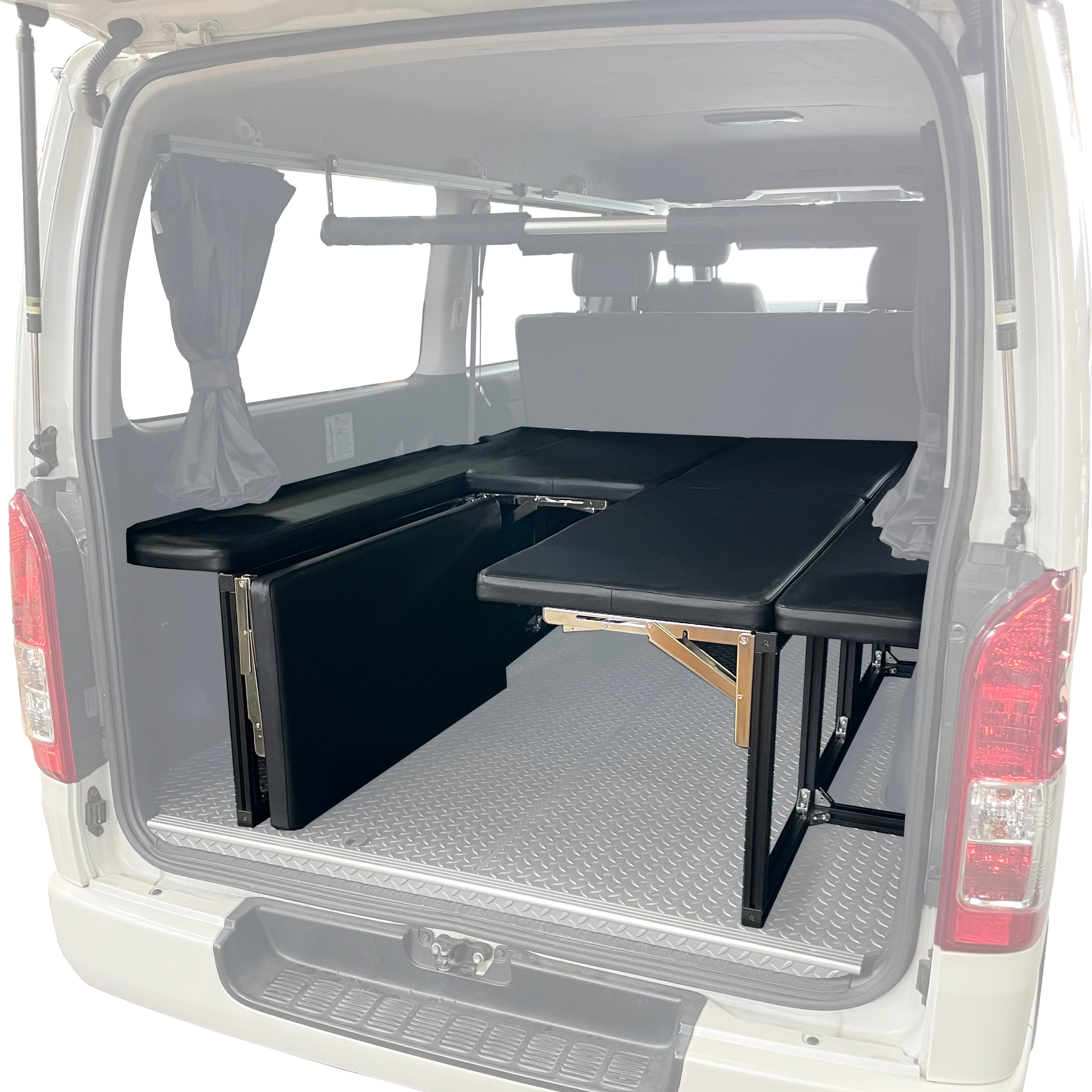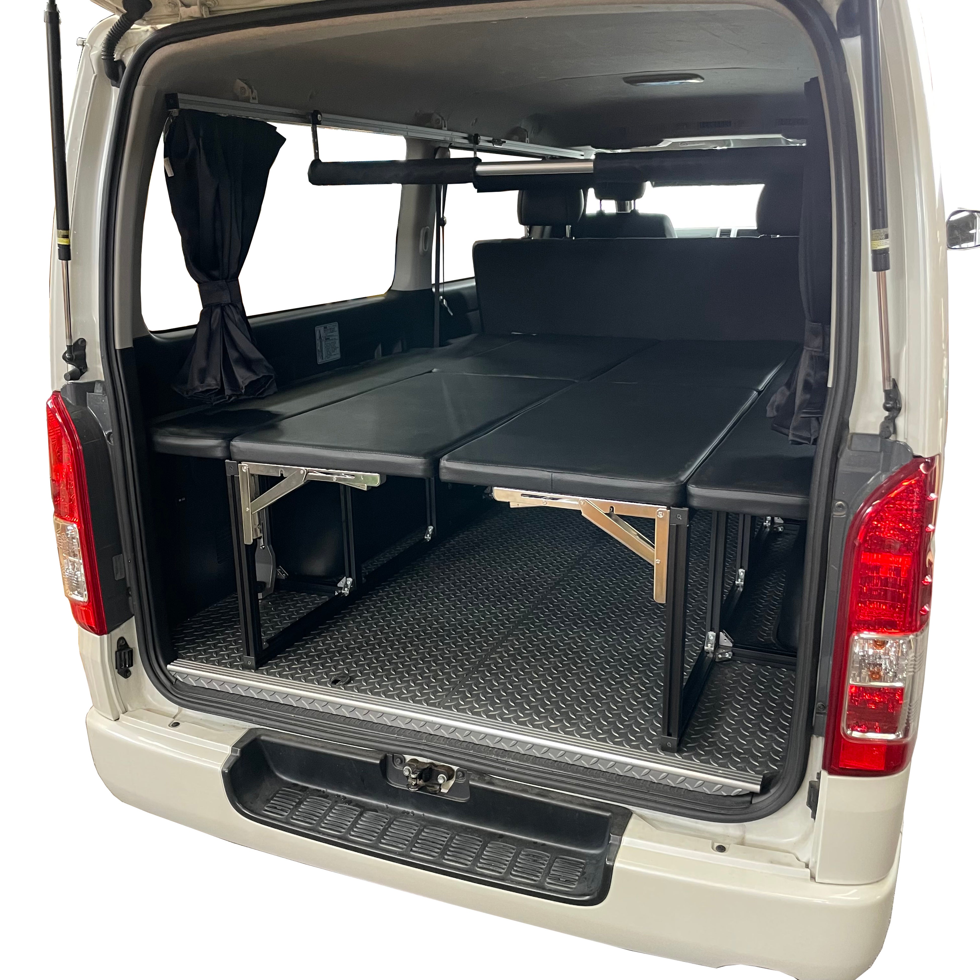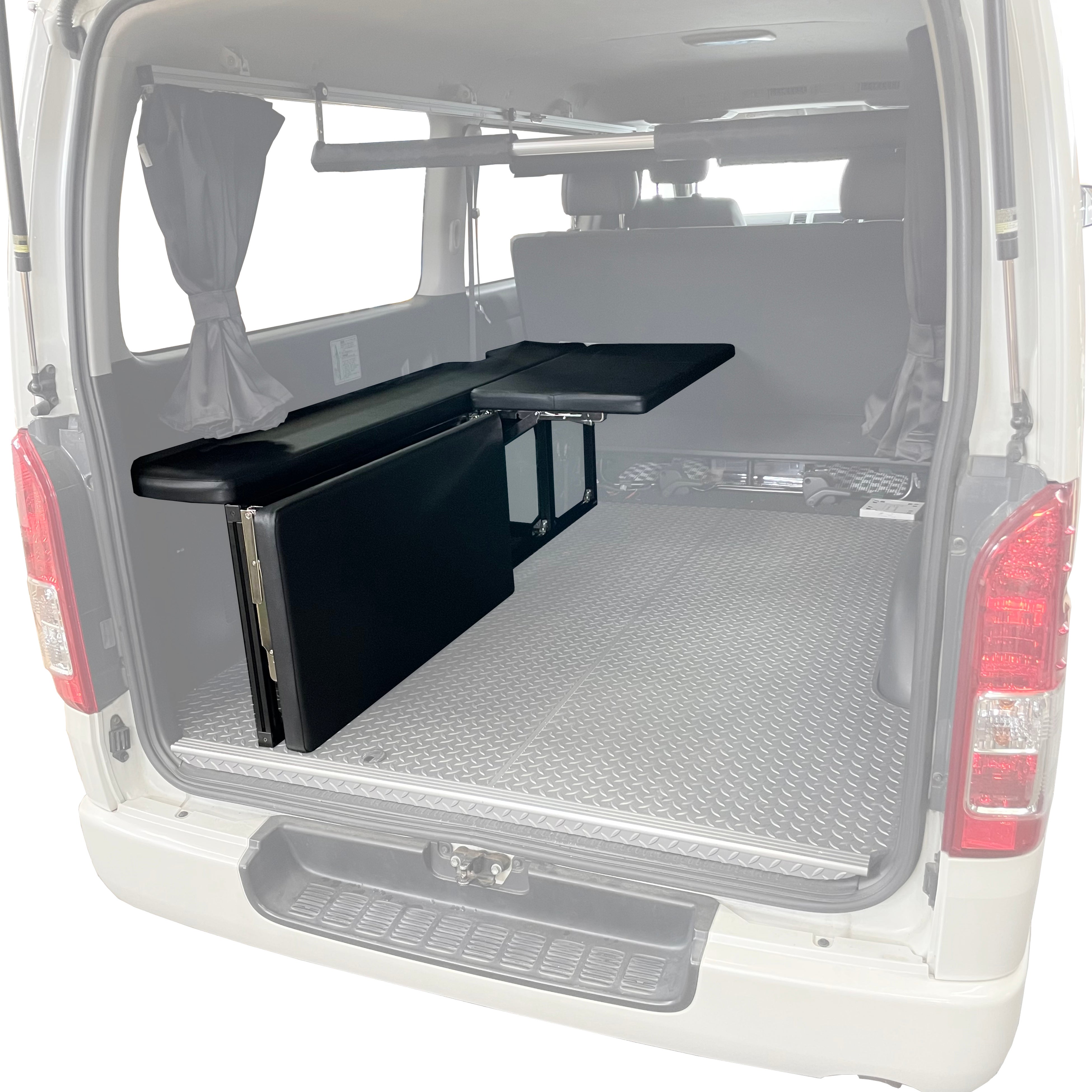 今回、200系ハイエースS-GL 標準ボディ用のベッドキットと同時にワイドボディ用、DX用も近日中の発売を目指して開発を進めております。