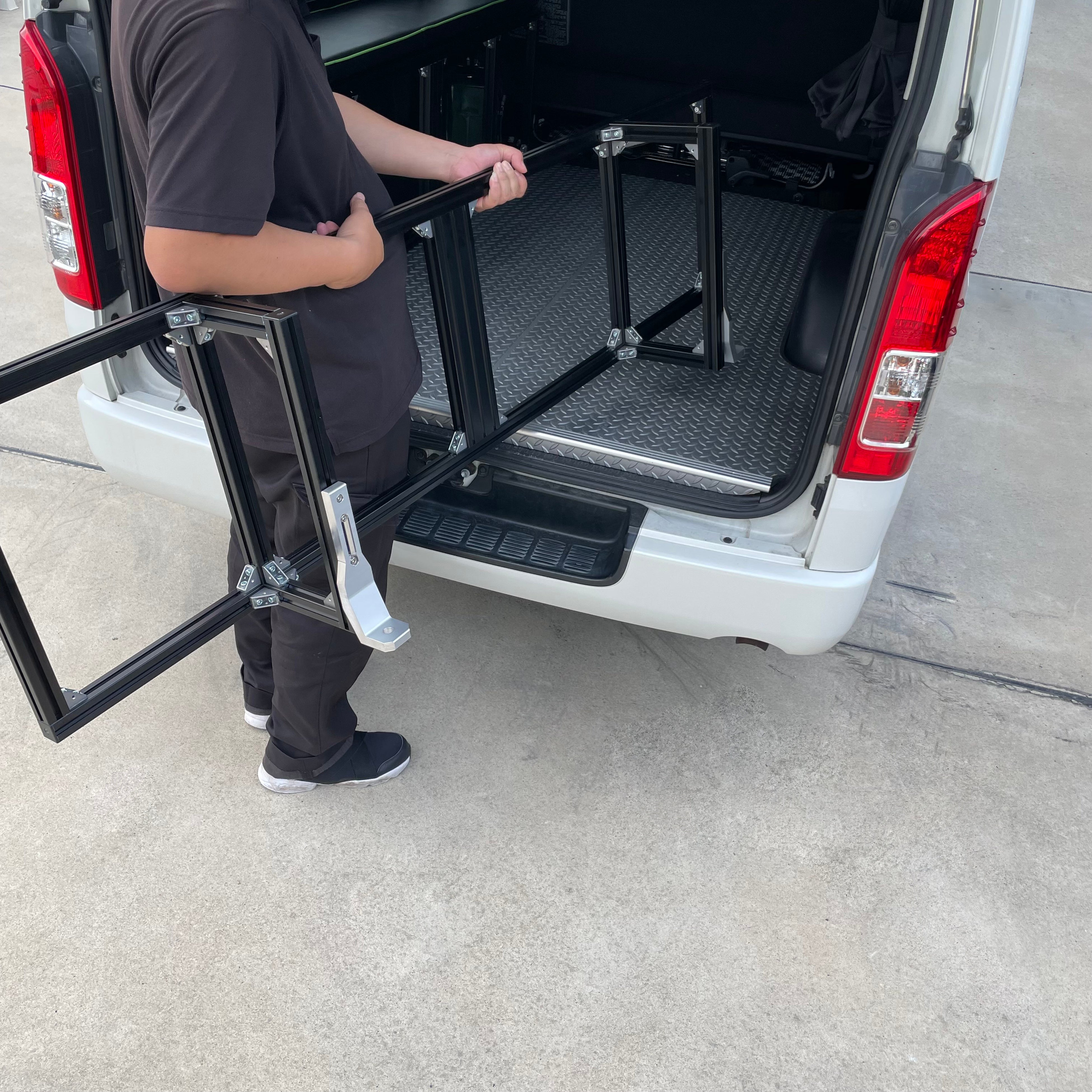 車室内の天井を活用するシステムキャリア「アルティキャリア」の開発、製造、販売を手掛ける当社は2021年よりアルミ製フレームを使用したベッドキットの販売をしてまいりました。