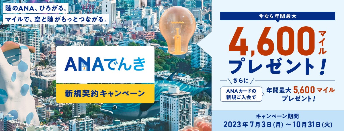 本キャンペーンの詳細および注意事項は下記「ANAでんきキャンペーン」のWEBサイトをご参照ください。