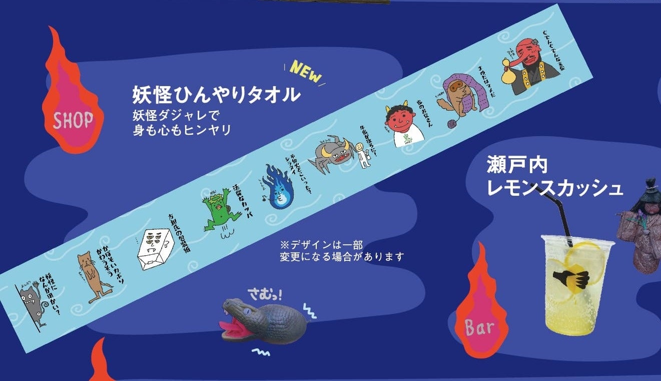 妖怪のダジャレで身も心もひんやりする「妖怪ひんやりタオル」をミュージアムショップで販売します。