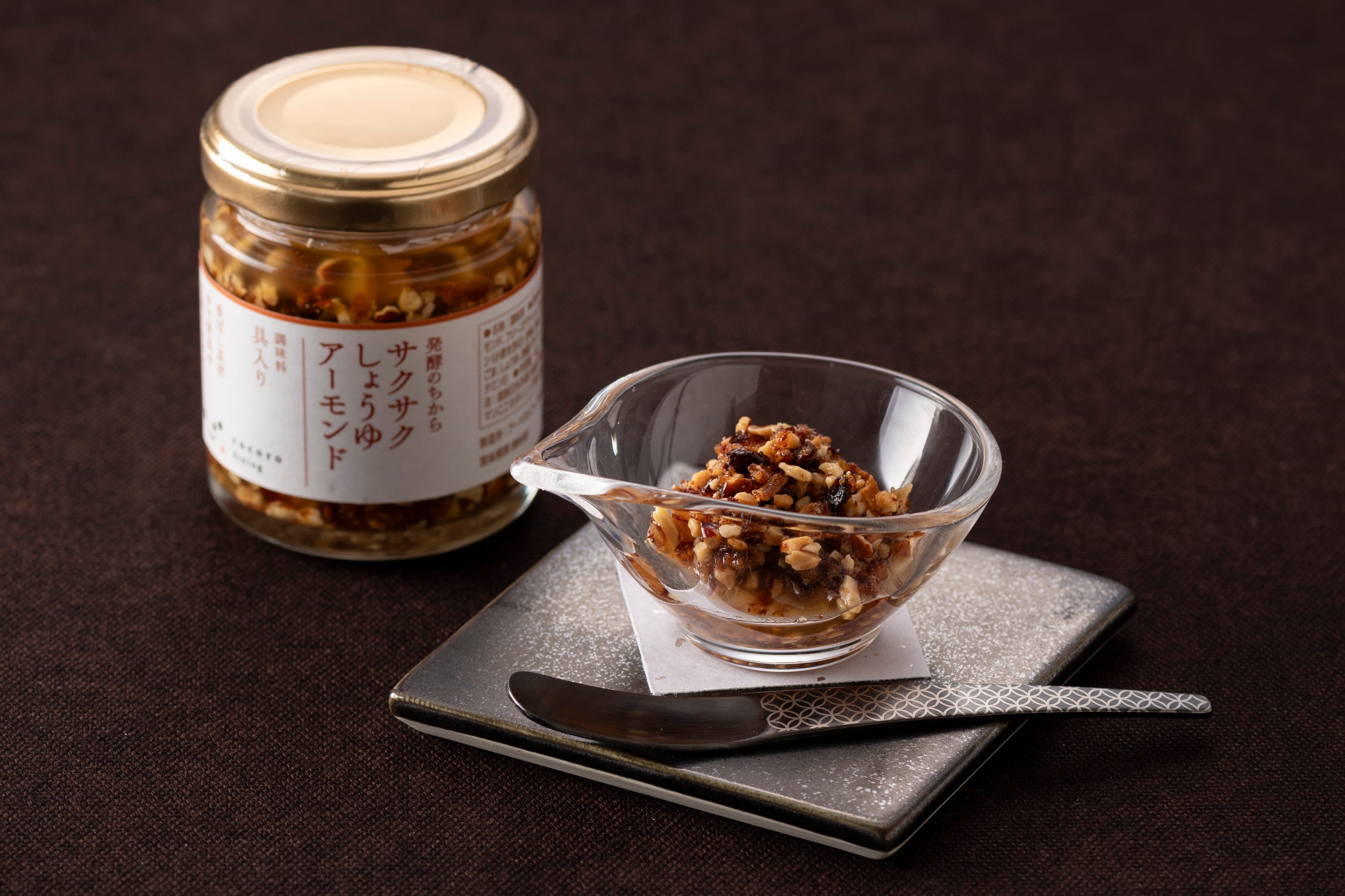 もろみを配合したフリーズドライしょうゆを味のアクセントに、ローストアーモンド、フライドオニオン、フライドガーリックといった具材を加えたトッピング調味料で、栄養豊富なアーモンドのサクサクとした食感と香ばしい味わいがやみつきになります。