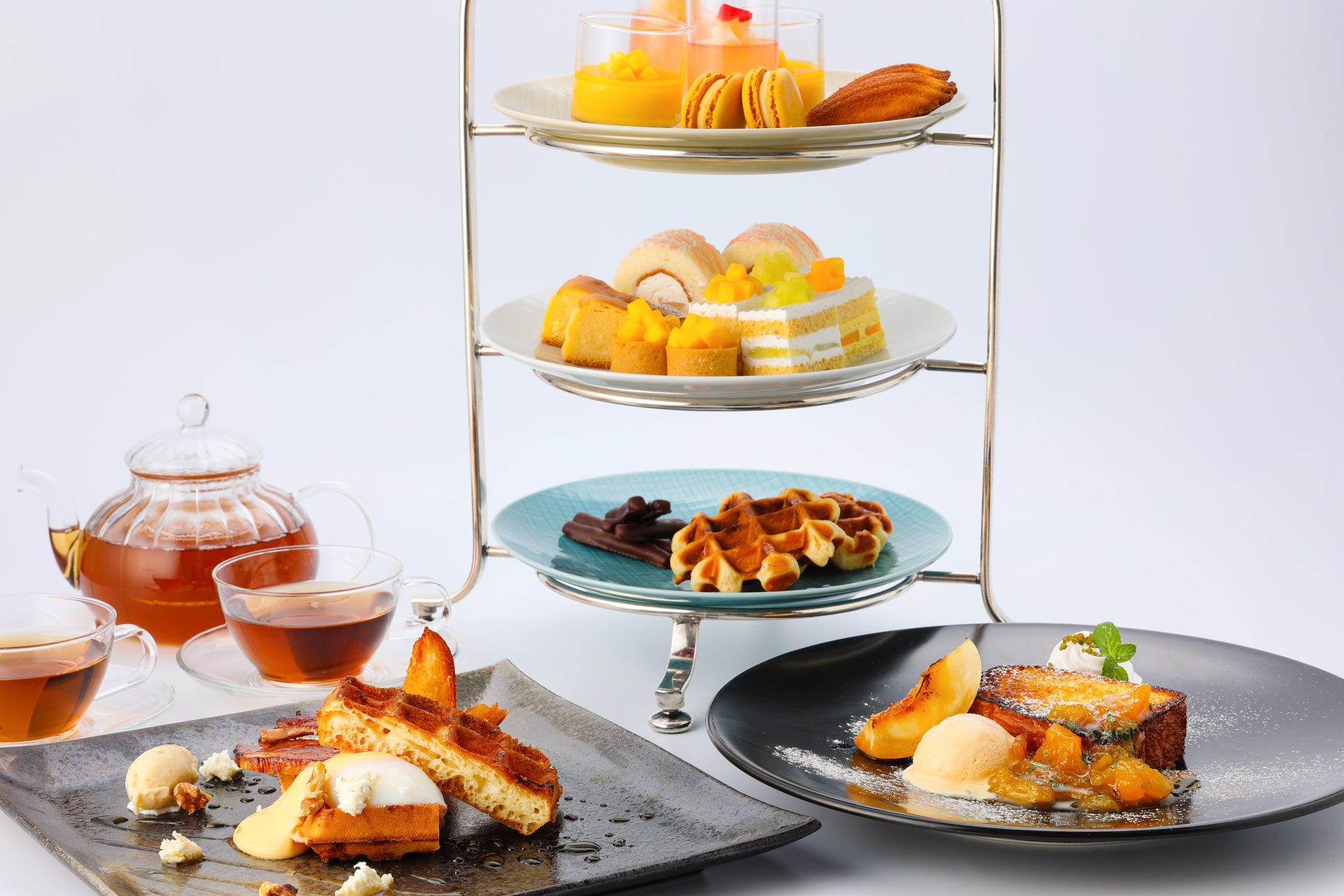 アフタヌーンティーセットは、人気のスーパーメロンショートケーキをはじめ、季節のタルトやマカロン、グラススイーツなど、ニューオータニ自慢のスイーツが並ぶほか、ベルギーで修業を積んだシェフが手掛ける「ベルジャンワッフル」や「フレンチトースト」など、4種類から選べるスペシャルプレート付き!もちろん、120分間、コーヒー・紅茶(アイス有)はお替わり自由です。
