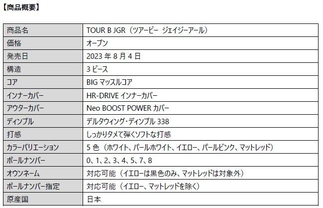 ブリヂストンスポーツ株式会社は、アマチュアゴルファーの飛距離の最大化を追求したゴルフボール「BRIDGESTONE GOLF TOUR B JGR」を 8月4日に発売します。価格はオープンです。