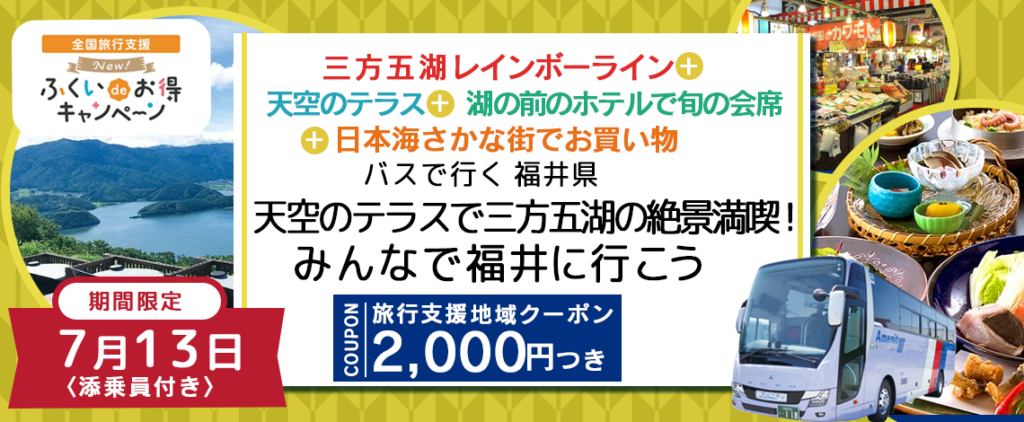 福井県は、7月20日(木)まで全国旅行支援割が延長となりました。