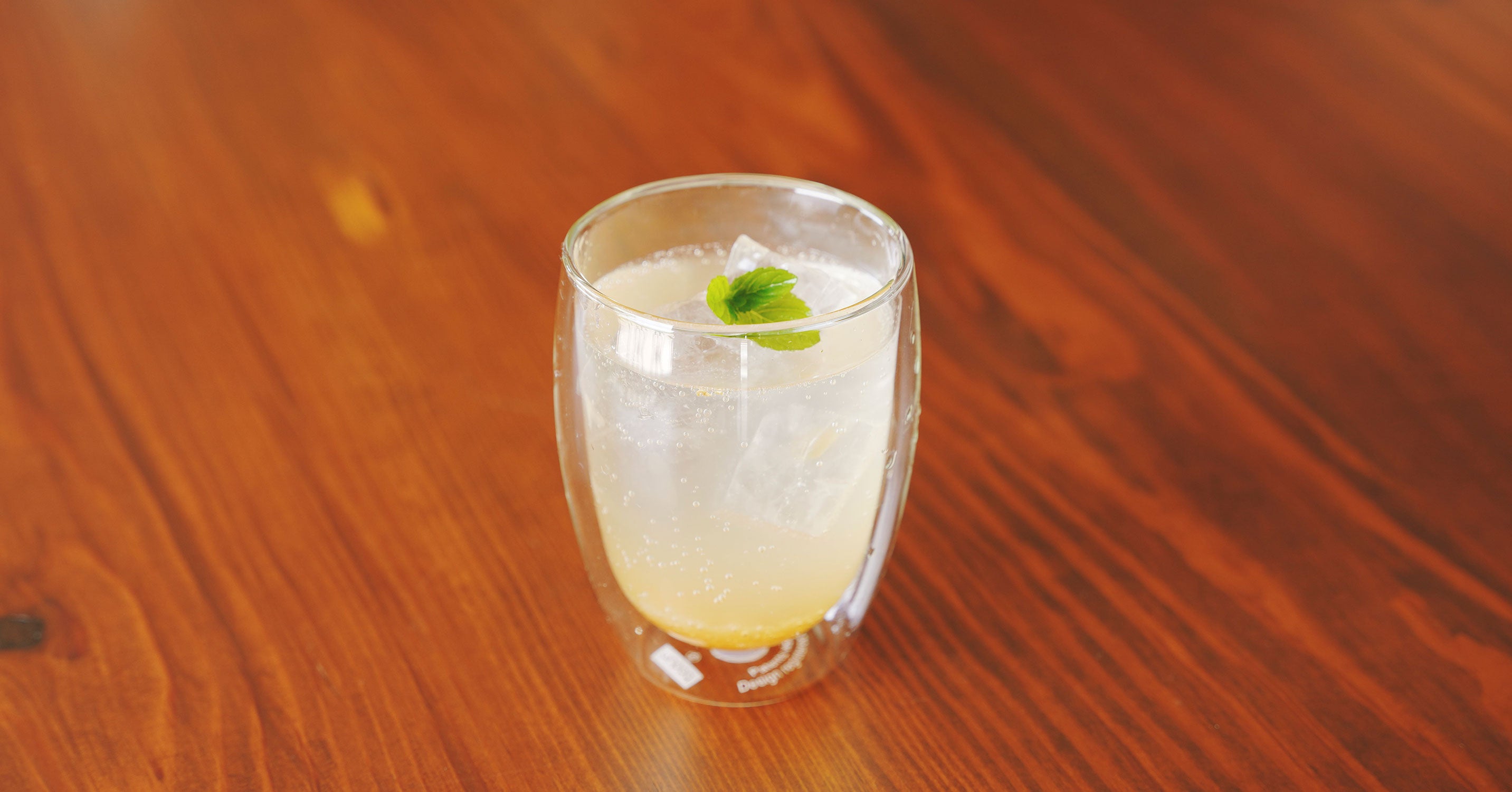 新生姜をたっぷり使用して自家製のジンジャーミックスを作り、炭酸で割りました。手作りならではの食感もお楽しみください。