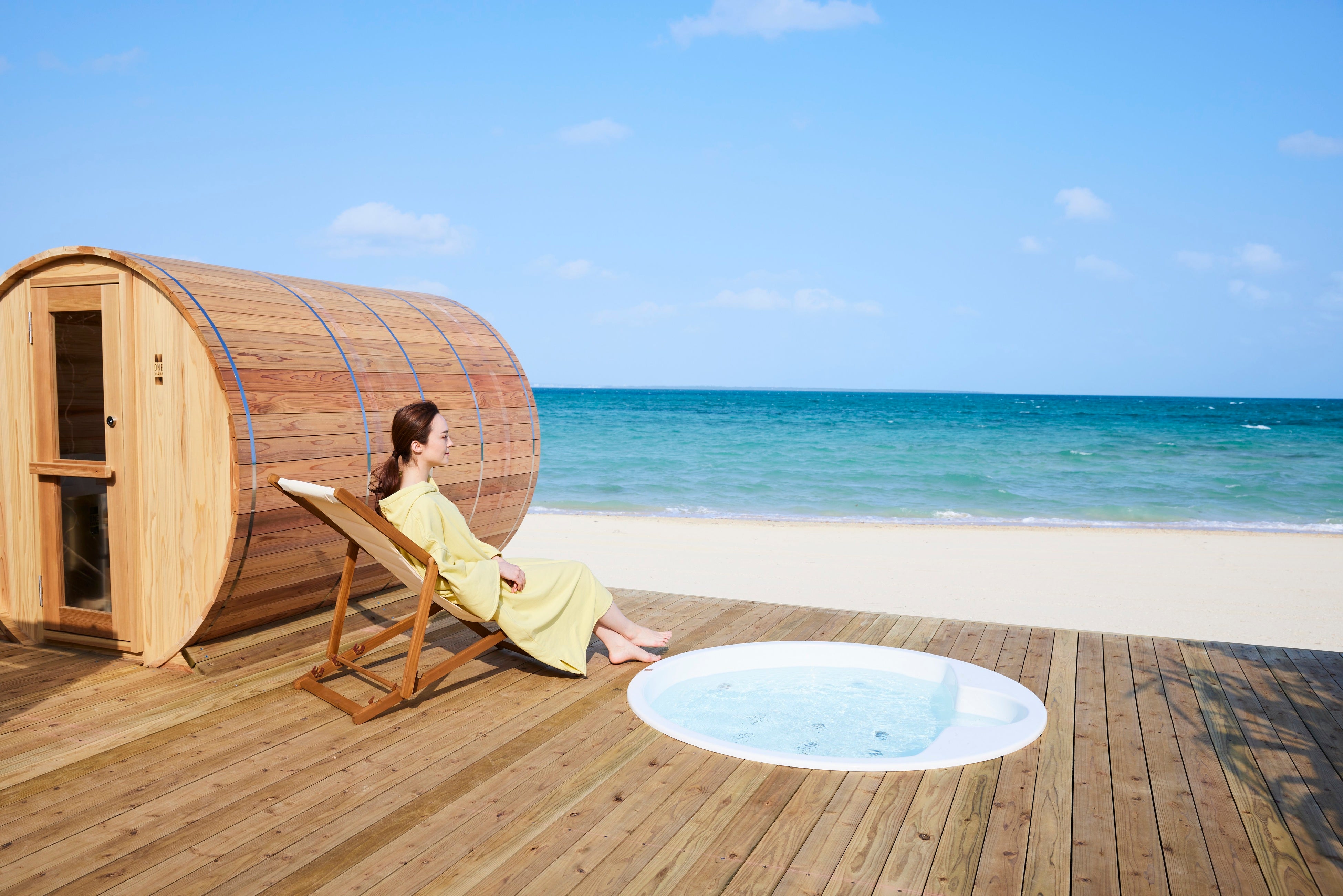 ホテルに隣接するビーチに、大きな窓を配した造りが特徴的なバレルサウナが登場します。窓から、碧く美しい海を眺めながらサウナを体験することができます。国内最大の珊瑚礁「石西礁湖」に囲まれた小浜島のロケーションだからこそ体験することができる、絶景の空間です。