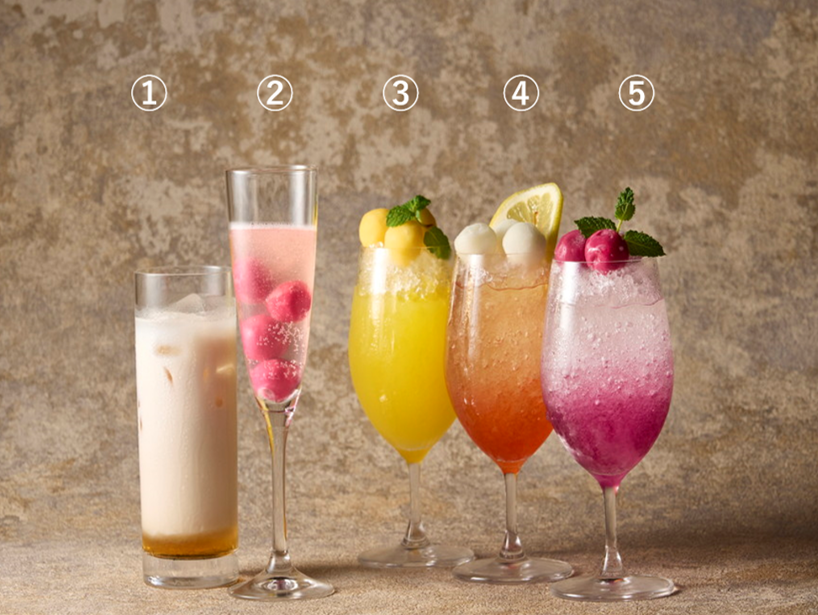 夏を演出するカラフルでポップなドリンクは、アルコール2種とノンアルコール3種をご用意しております。