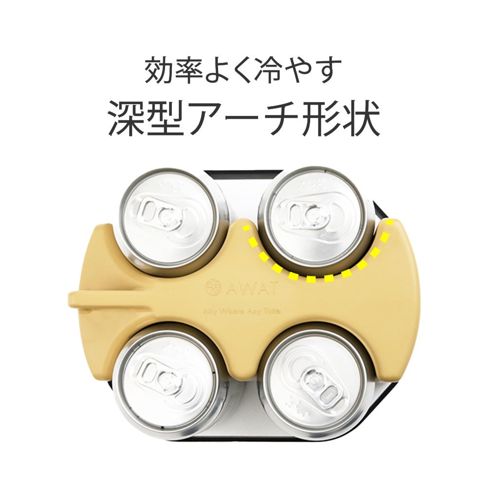 缶やペットボトルに沿うアーチ形状だから、接地面が広くしっかり冷える。