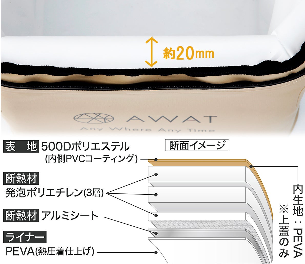 【Makuakeでセット売りが完売】最大7層の極厚構造でハードクーラーにも負けない保冷力を実現させた『AWAT クーラーボックス』と缶(ペットボトル)専用の保冷剤『AWAT 缶クーラー』一般発売開始。