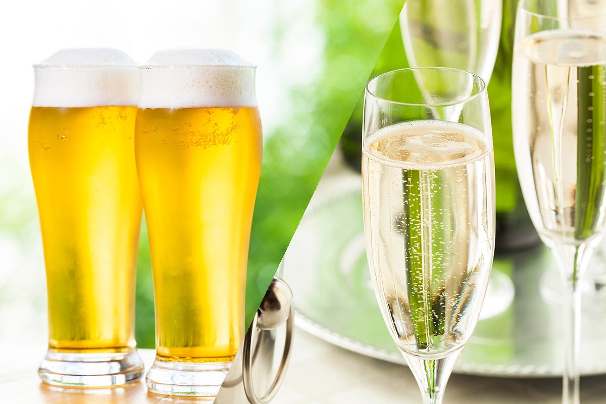 無料で提供されるドリンクには、ビールやスパークリングワインのアルコール類から、ホットコーヒー、紅茶、ジュースなど、幅広い年齢層のお客さまにご満足いただけるバリエーションをご用意します。
