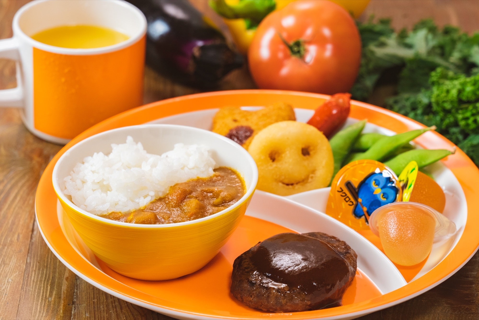 ③レストランでは、お子さま向けのキッズメニューを豊富に揃えています。イチオシは、おもちゃ付きのハレニワキッズプレート(680円)