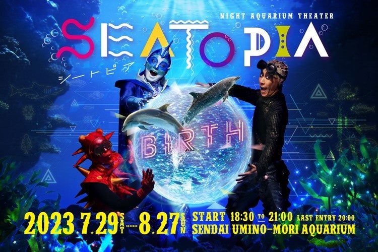 『仙台うみの杜水族館』では、2023年7月29日(土)~8月27日(日)の期間の閉館後、館内全体が劇場のようなファンタジー空間に変身し、“うみ”と“ひと”のつながりをテーマにしたナイトアクアリウムシアター「SEATOPIA」を開催いたします。