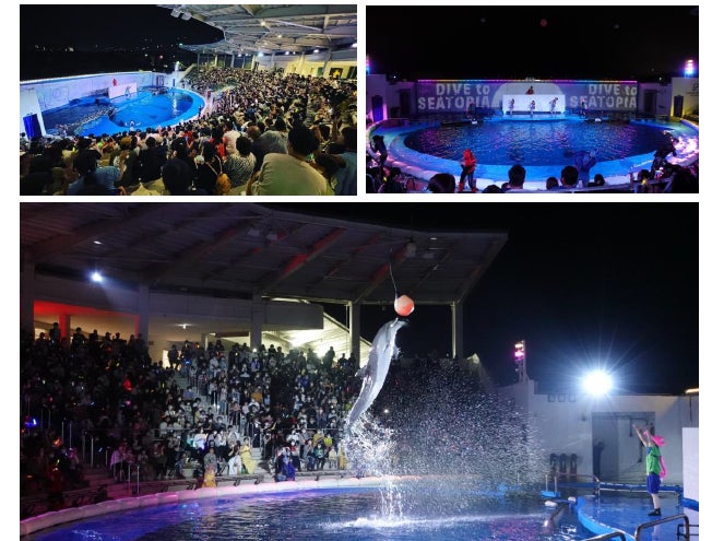 メインパフォーマンス「DIVE TO SEATOPIA」は、ダイナミックなイルカのパフォーマンスと、『白A』によるダンス・アクロバット要素×映像の芸術的なパフォーマンスのコラボレーションにより生み出される、新たなナイトエンターテインメントです。