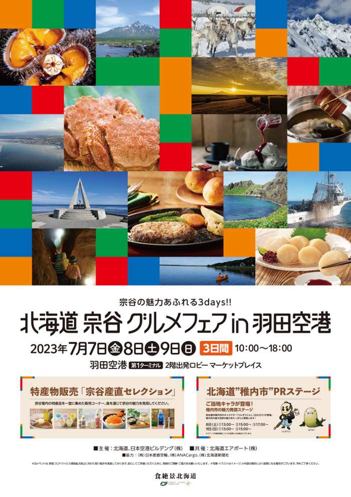北海道(知事:鈴木直道)、日本空港ビルデング株式会社(本社:東京都大田区、代表取締役社長執行役員兼COO:横田信秋)、北海道エアポート株式会社(本社:北海道千歳市、代表取締役社長:蒲生猛)は、羽田空港第1ターミナル2階マーケットプレイスにて、北海道宗谷地域の産品PRおよび、同地域と首都圏との人流・物流促進を目的とした「北海道宗谷グルメフェアin羽田空港」を開催します。初夏の北海道宗谷から、旬の産品や羽田空港初登場の品々が集合します。この機会に是非お立ち寄りください。