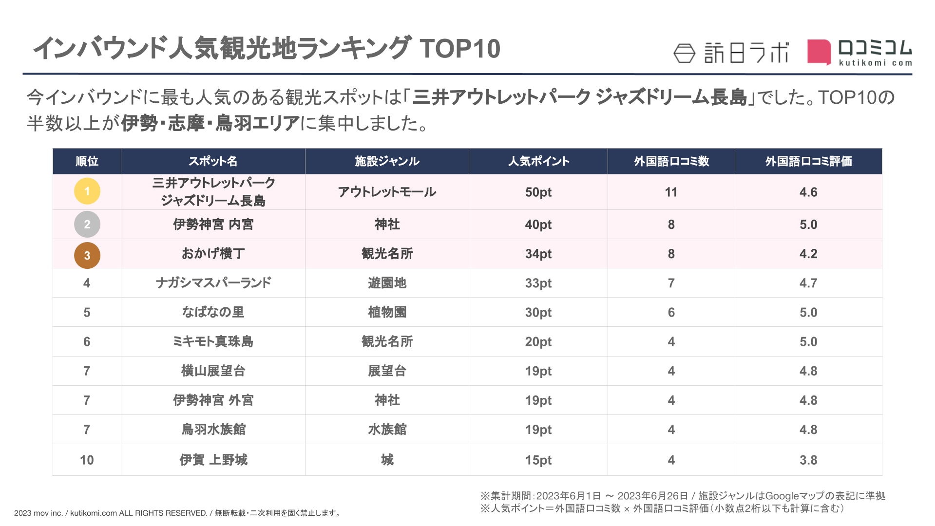 【独自調査】インバウンド人気観光地ランキング三重編:コロナ後 最新の訪日客の支持を集めたスポットTOP10を発表 #インバウンドMEO