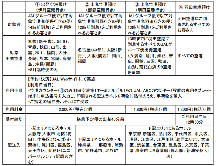 また、羽田空港行きの対象空港についても北海道・東北地方発を中心に9空港がさらに追加となり、13時までに羽田空港に到着するすべてのJALグループ便で本サービスが利用できることになります。