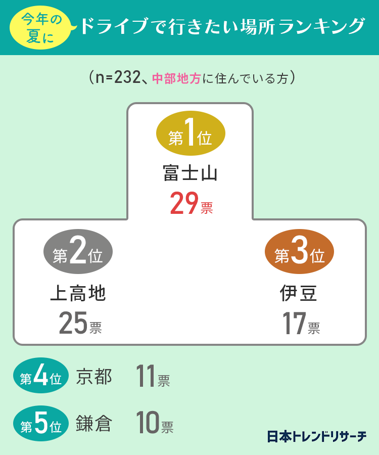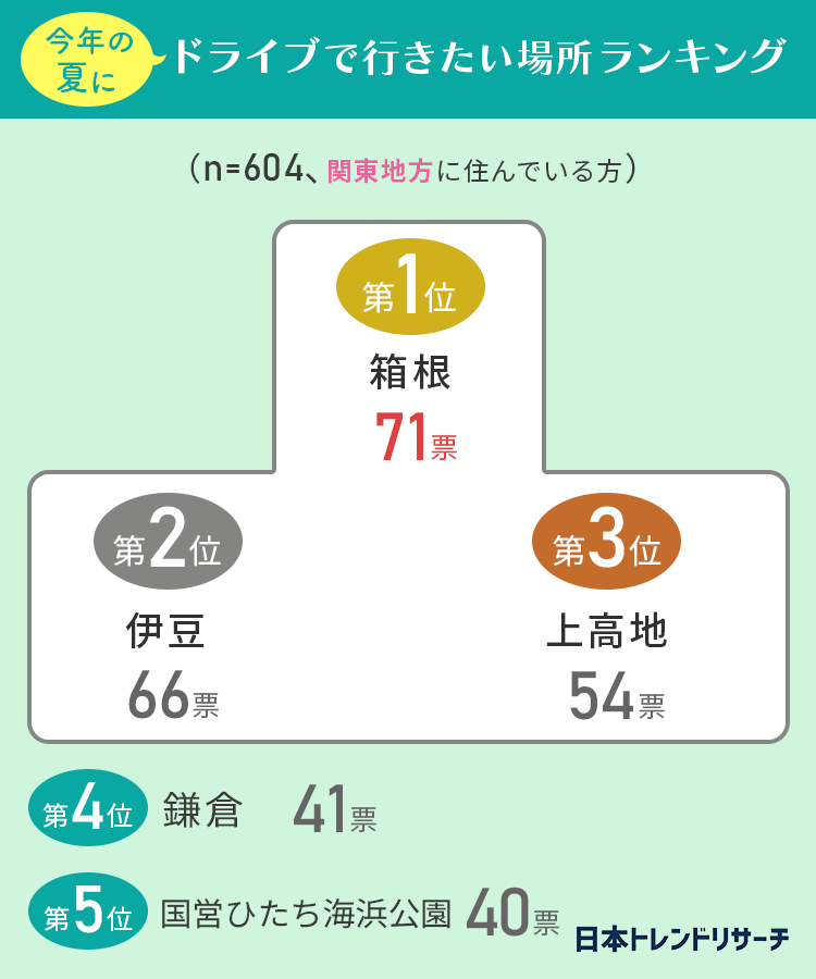 今回は、夏にドライブで訪れたい場所を地域別に調査しました。