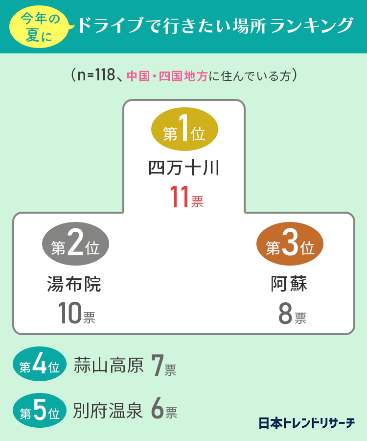 ■【中国・四国地方に住んでいる方】自然豊かな中国・四国地方のスポット!「阿蘇」「湯布院」に続く1位は…?