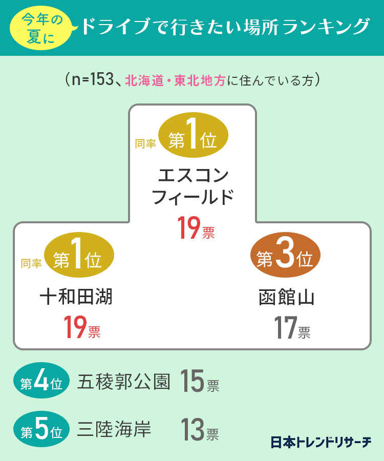 ■【北海道・東北地方に住んでいる方】「エスコンフィールド」と「十和田湖」が同率1位!