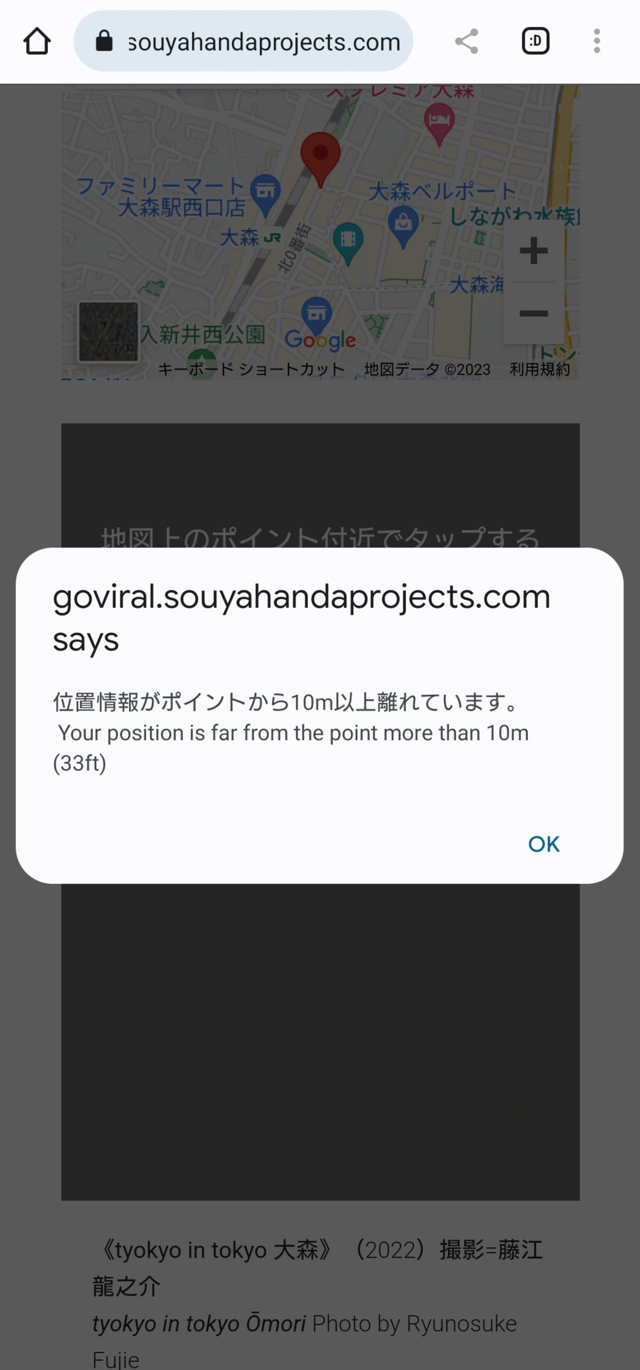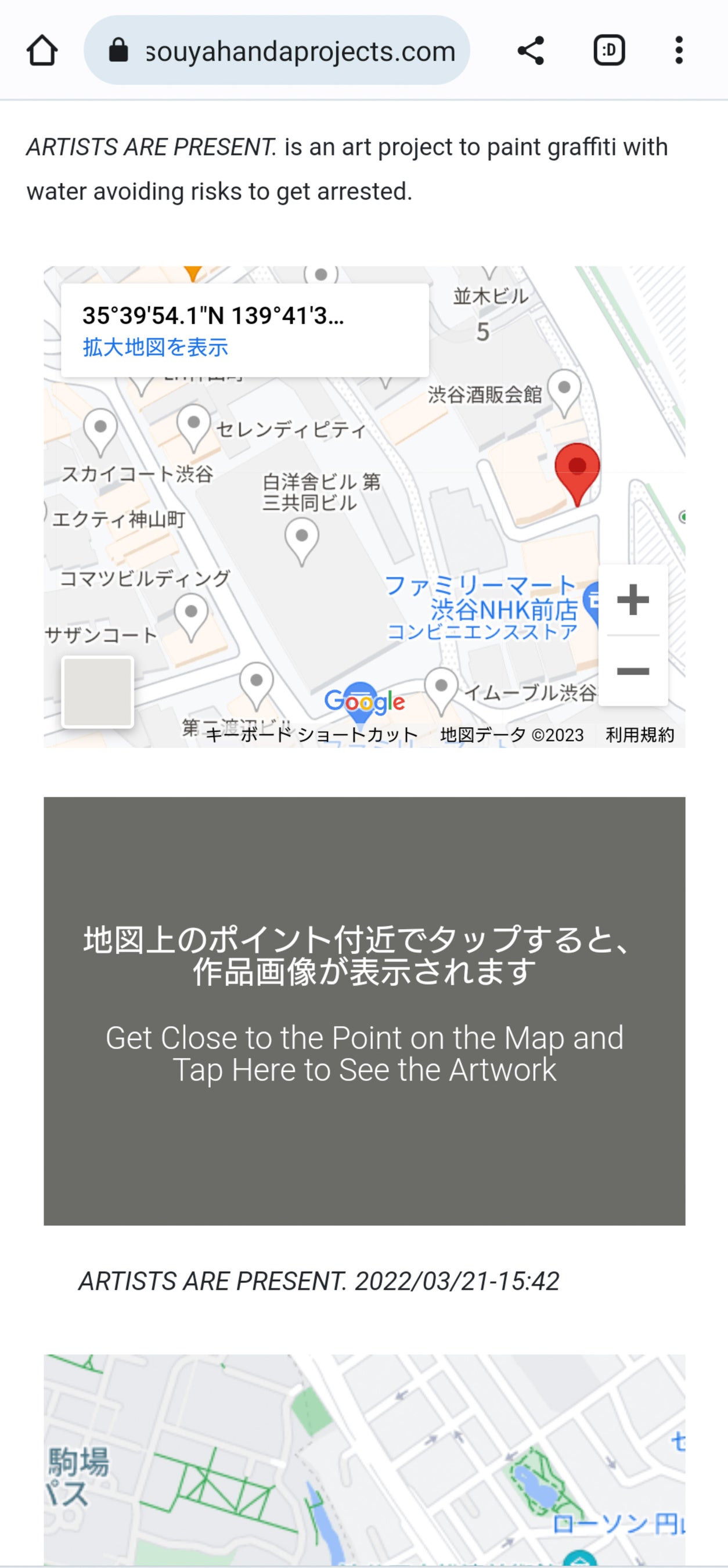 本プロジェクトへはウェブサイト( https://goviral.souyahandaprojects.com/ にアクセスすることで参加することができます。作品の実際の実施場所を訪れることで、ウェブサイト上で作品画像が閲覧可能になります。