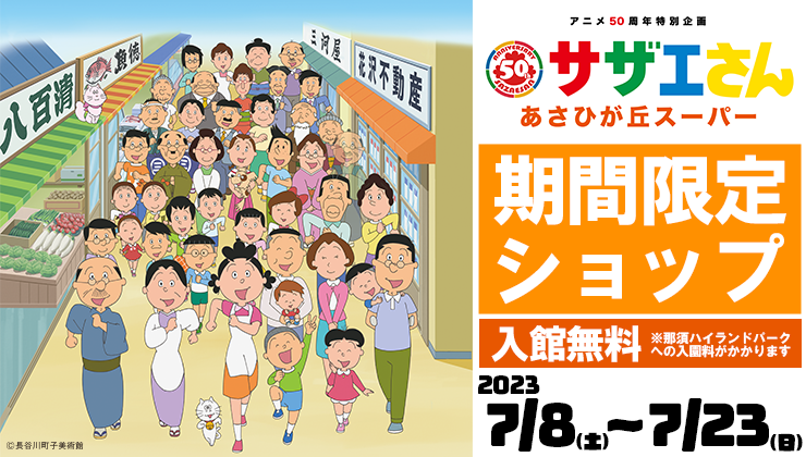 藤和那須リゾート株式会社(栃木県那須町/代表取締役社長:岩本 大二郎)が運営する“那須ハイランドパーク”では、2023年7月8日(土)~7月23日(日)の期間で、アニメ「サザエさん」のPOP UP SHOP『サザエさんあさひが丘スーパー』の開催が決定しました。