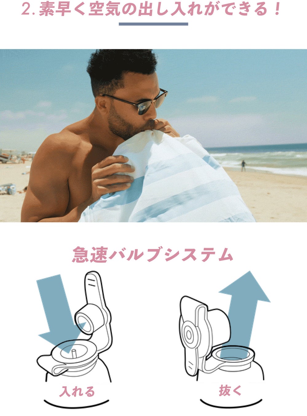 急速バルブシステム搭載で、簡単に素早く空気を出し入れでき、後片付けもらくちんです!