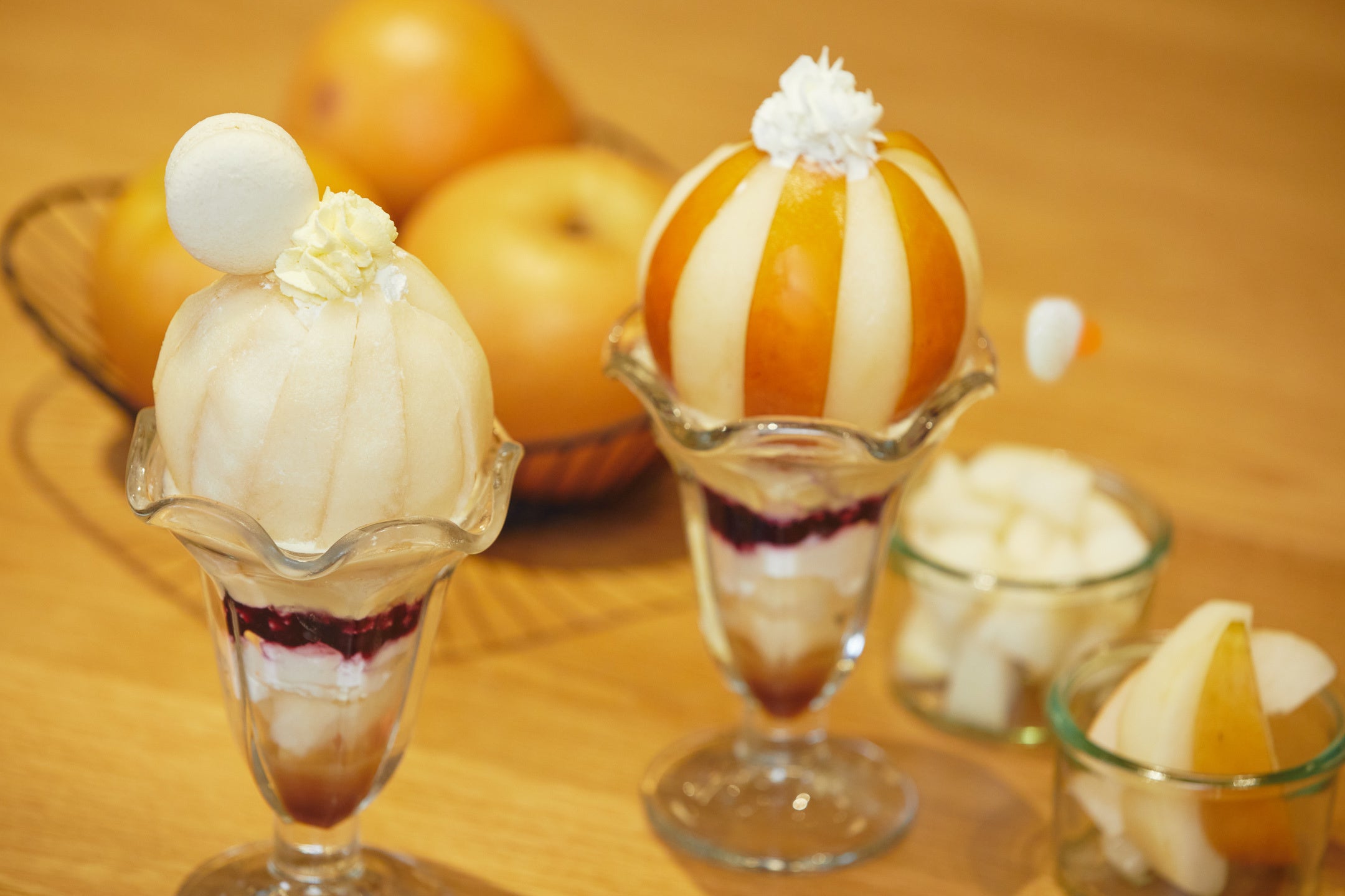 ホテルへ戻ったら、持ち帰ってきた梨を使い、「梨まるごとパフェ」作りを体験することができます。ホイップクリームやマカロン、チョコレートクランチなどのトッピングを、自由に盛り付けたら完成!梨をまるごと使用した可愛らしい見た目にわくわくします。オリジナルのパフェを作りながら、みんなでわいわい楽しめること間違いなし!