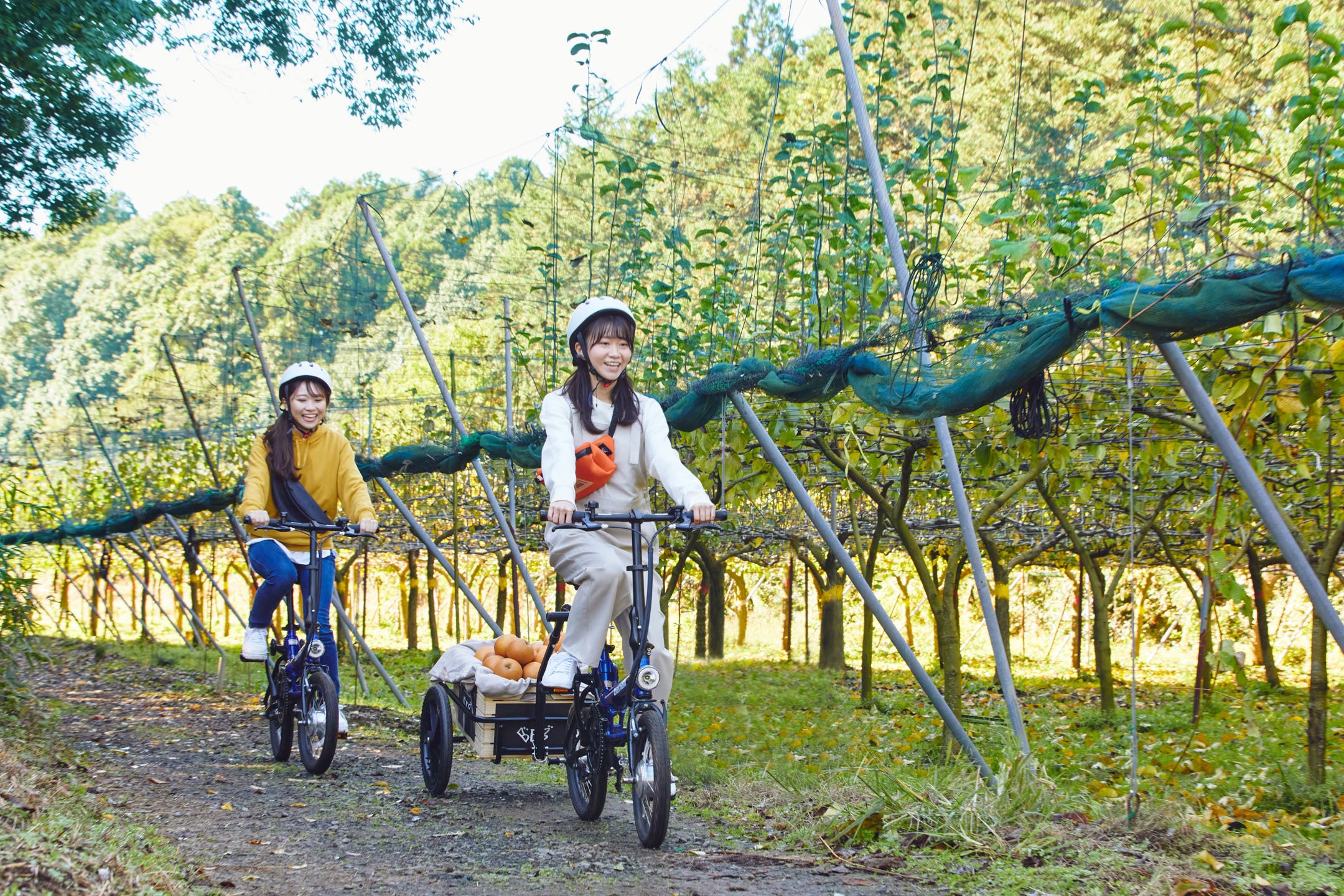 1 トレーラー付き自転車で快適にサイクリングし、梨狩りを体験!