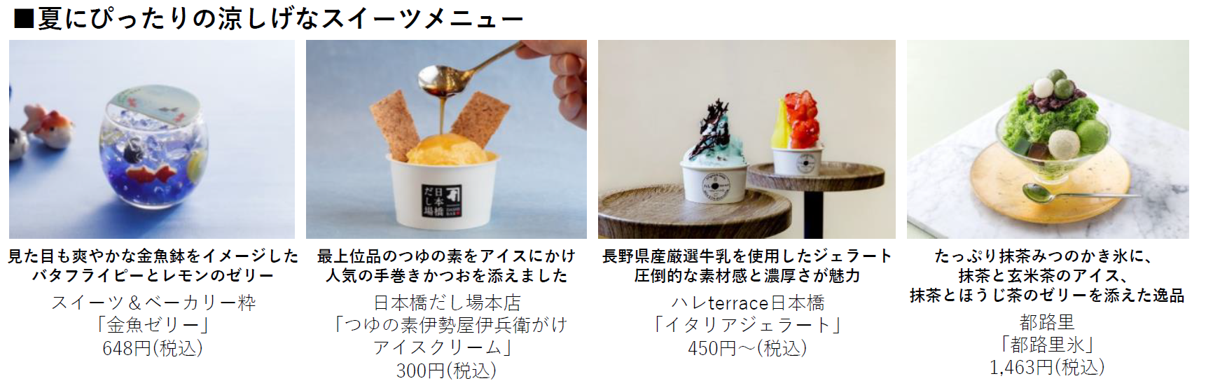 ① ecoedoメニュー -涼やサステナブルをテーマにした限定グルメ・グッズで日本橋ならではの涼を感じる-