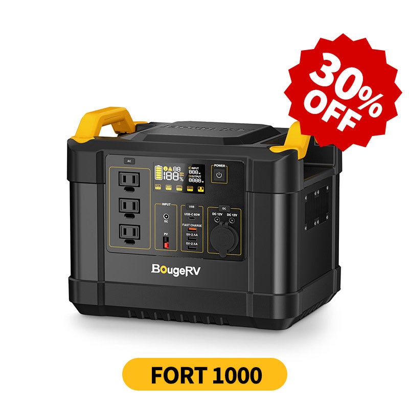 BougeRV Fort 1000は、リン酸鉄リチウムイオン電池を使用しており、充放電回数は3500回(業界平均500回の約7倍)です。さらに、4つの放熱ファンを搭載しており、より安全にご使用いただけます。また、BMS電池保護システムにより、過充電や温度管理などで最高レベルの安全性を実現しています。ACポート、DCポート、ソーラーパネルアンダーソンポート、USB-Type-C PD 60W双方向充電ポートを含む、4種類の充電方式に対応しています。さらに、10つの出力ポートを備えており、最大で10台のデバイスを同時に充電することができます。