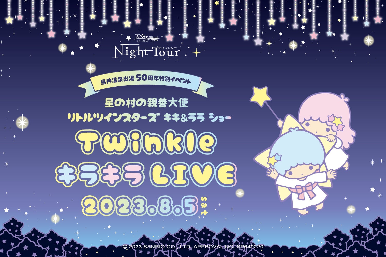 日本一の星空「長野県阿智村」の株式会社阿智昼神観光局(代表取締役:白澤裕次)は、阿智村で開催中の天空の楽園 ナイトツアー(主催:ジェイ・マウンテンズ・セントラル株式会社 会場:富士見台高原ロープウェイ ヘブンスそのはら)にて、2023年8月5日(土)に、株式会社サンリオの人気キャラクター「リトルツインスターズ キキ&ララ」による、昼神温泉出湯50周年特別イベント「星の村の親善大使 リトルツインスターズ キキ&ララ ショー Twinkle キラキラ LIVE」を開催いたします。
