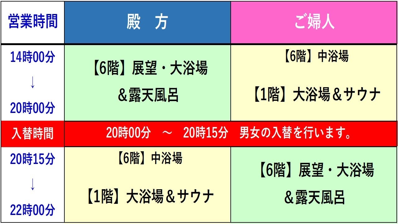 ※【6階・大浴場&露天風呂】と【1階・大浴場&サウナ 6階中浴場「替わり風呂」】