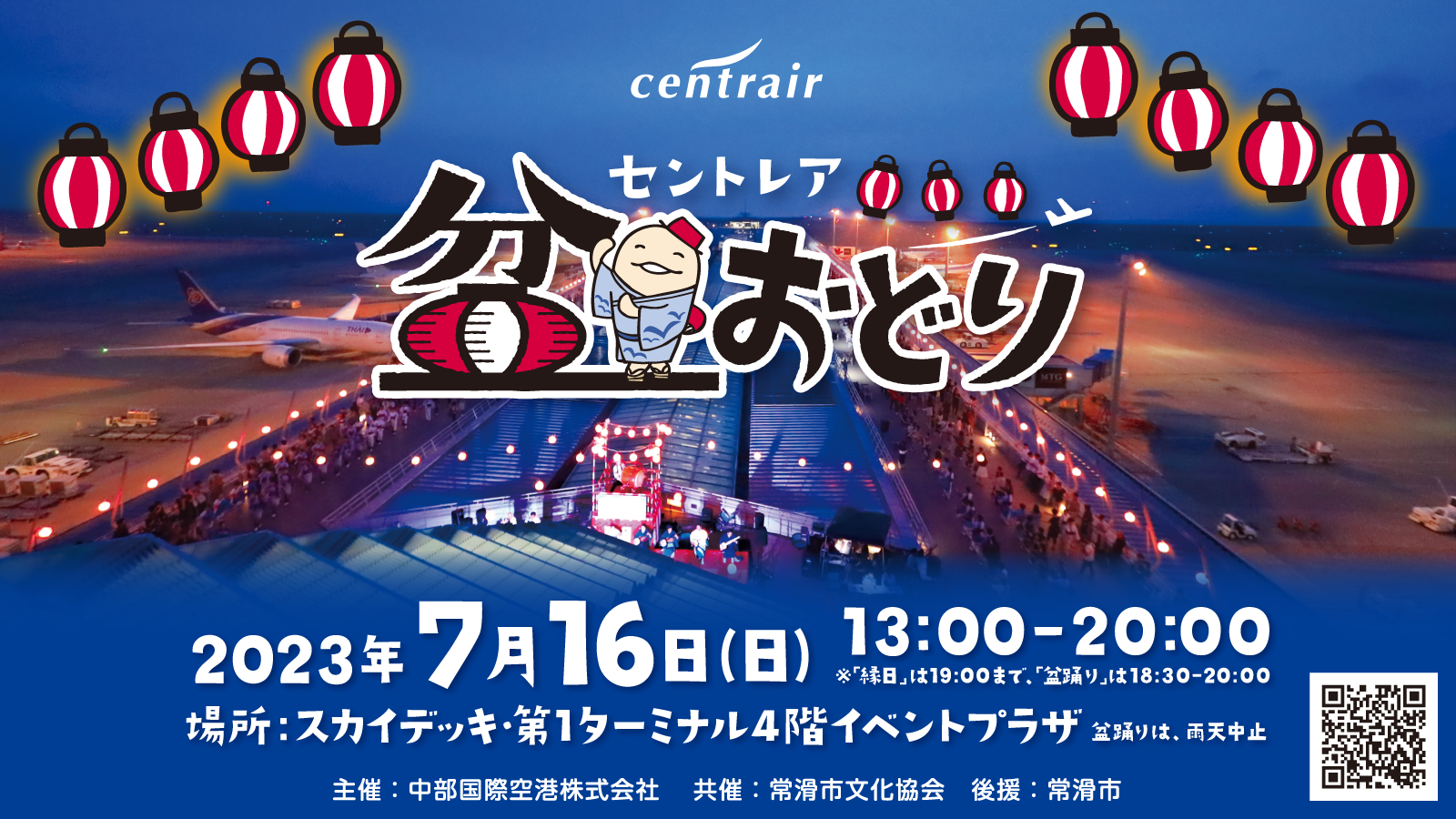 セントレア盆踊りは、2009年から毎年開催する夏の恒例行事でしたが、コロナ禍で2020年以降の開催を見送っておりました。今年は、新型コロナウイルスの感染症法上の位置付けが変更されたことなどを踏まえ、4年ぶりの開催となります。
