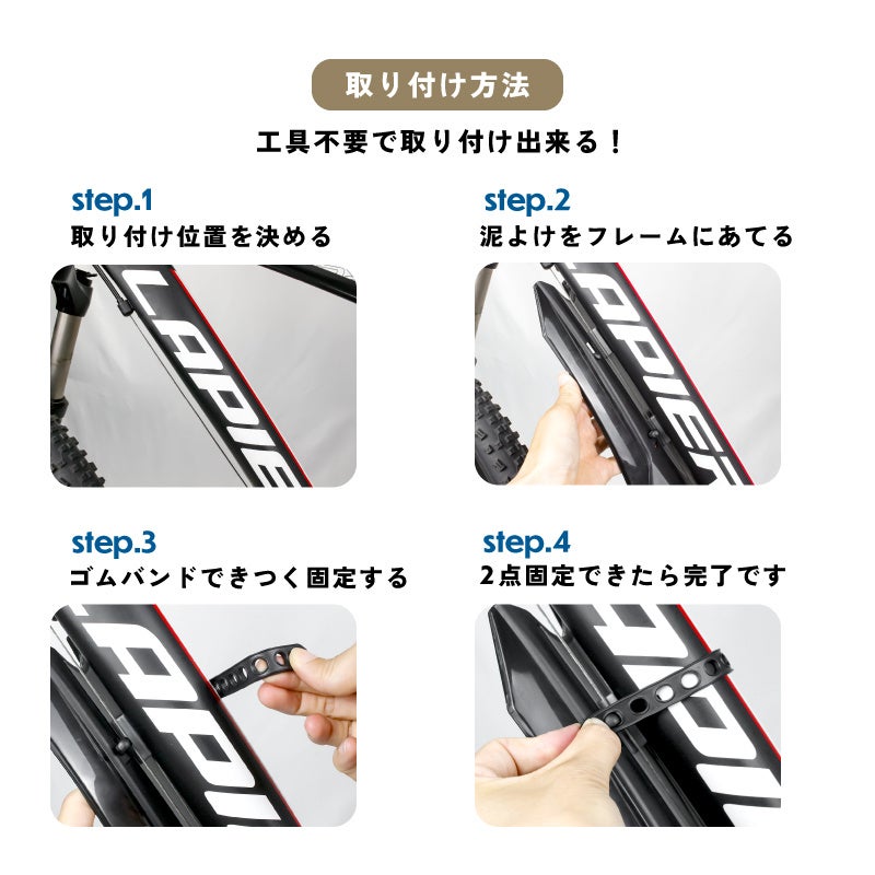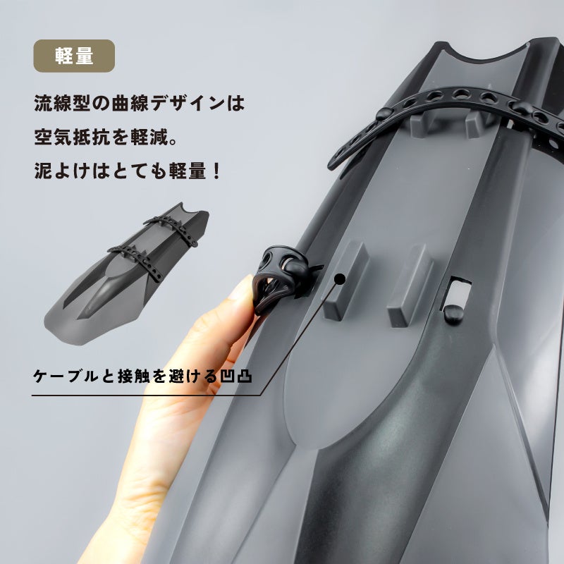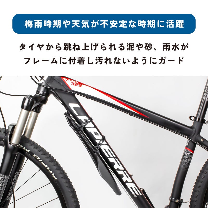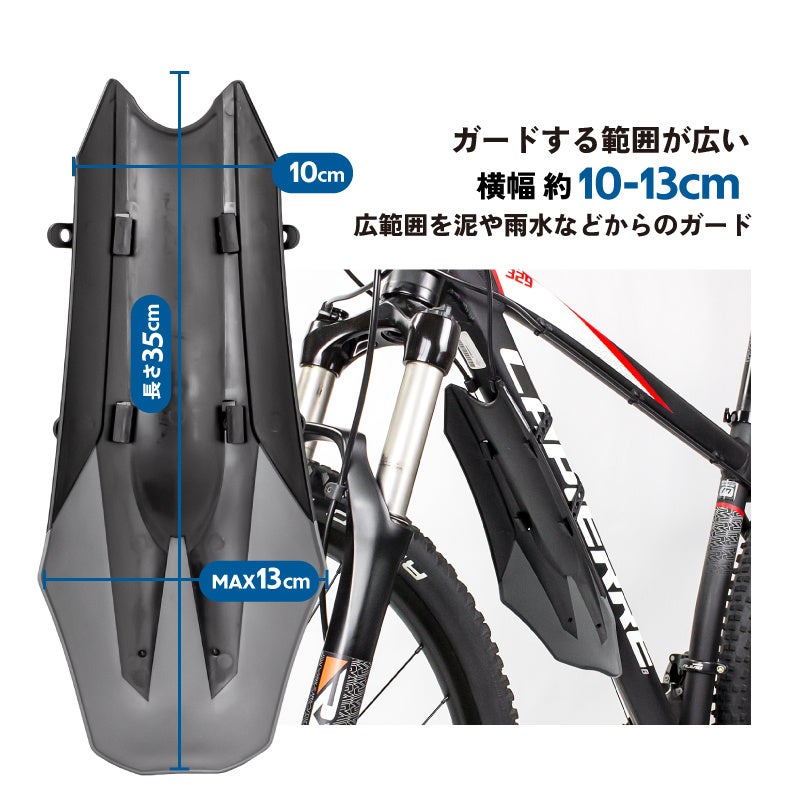 前輪から跳ね上げられる泥、雨水がフレームや体にかかるのを防ぐアイテムです。