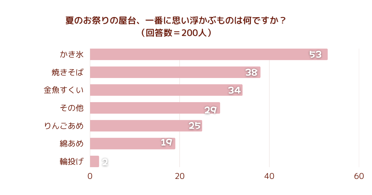 「夏のお祭りの屋台、一番に思い浮かぶものは何ですか?」とアンケート調査した結果、1位は『かき氷』でした。