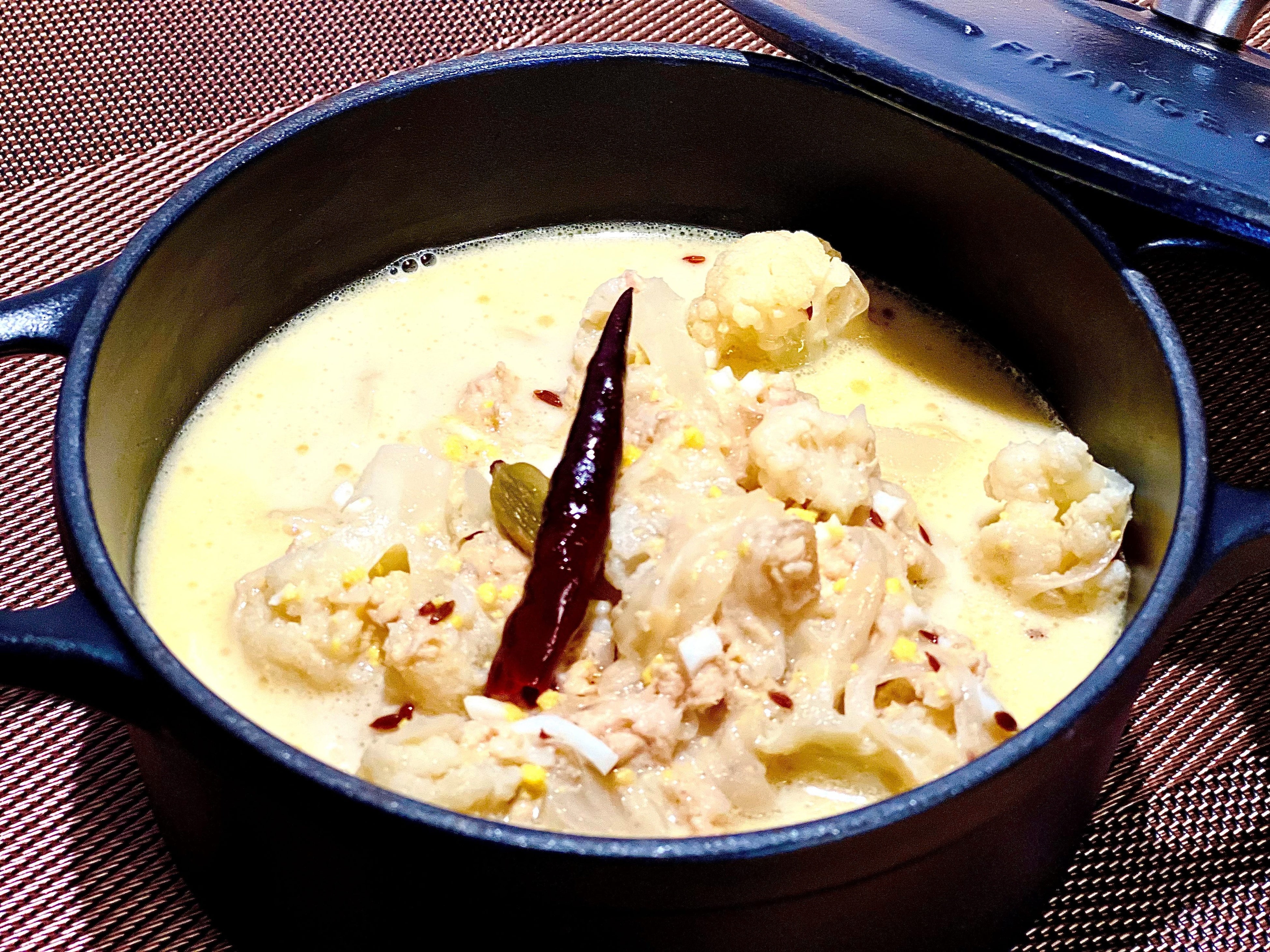 ベースは生クリームを使用しておりますので、ホワイトシチューのようなクリーミーさにスパイスのパンチも
