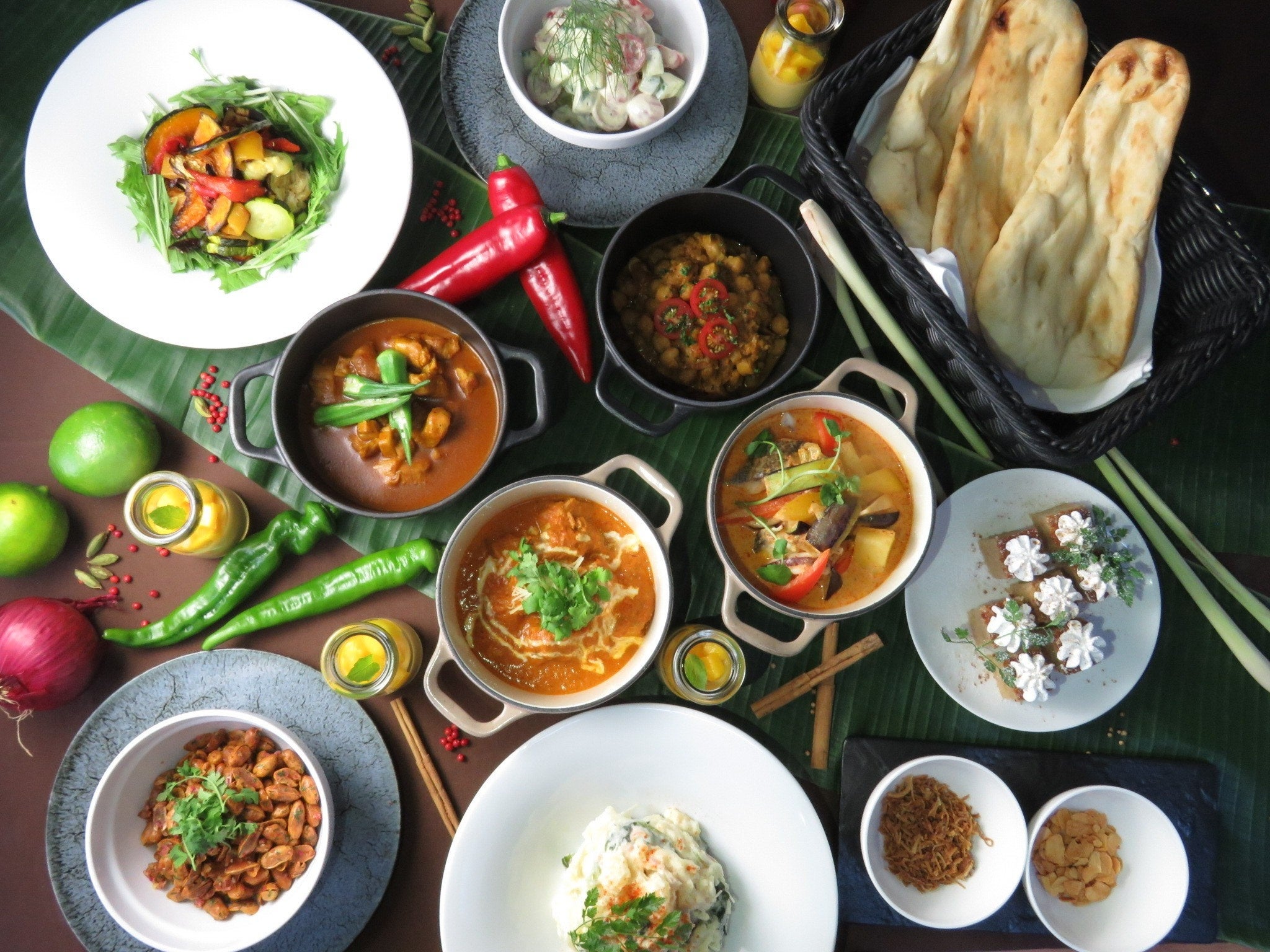 去年と同様、ビュッフェには4種類の手作りカレーと盛りだくさんの新鮮な野菜、2種類のライスとナン、フルーツやデザートも並び、全て食べ放題です。4種類のカレーは去年人気の高かった2種類は今年も継続、残りの2種類は今年新たにシェフ星野が考案しております。どのカレーが一番美味しいかは、食べ比べてみてください。付け合わせの野菜を何と合わせるか、ナンで食べるかご飯に合わせるかも、好みでカスタマイズできるのも楽しみの一つです。去年は一度では楽しみきれず、何度もお越し頂いたお客様もいらっしゃいました。是非、今年もたっぷりお腹一杯お召し上がりください♪