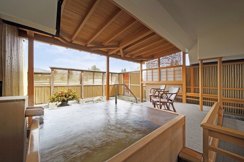 ご家族でのご利用に最適な貸切露天風呂。プライベート空間でゆったりと温泉をお楽しみいただけます。チェックインの際に、お気軽にフロントにお申し付け下さいませ。